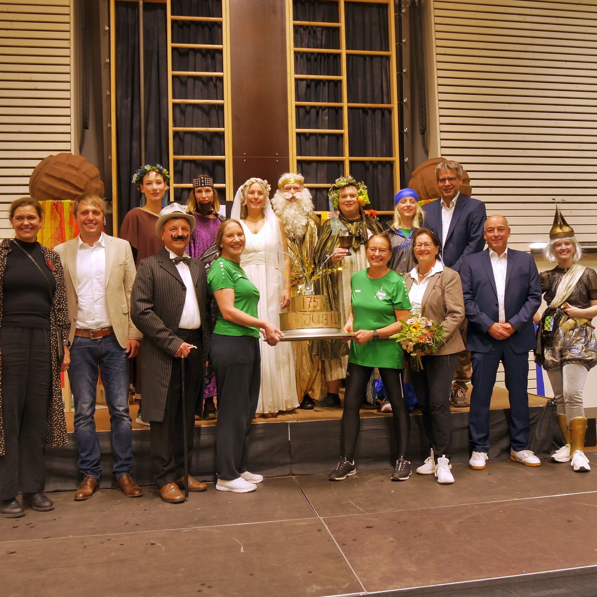 Im Rahmen der Jubiläumsfeier des VfL Herrenberg wurde ein spektakuläres Theaterstück mit dem Titel "Eine göttliche Wette" von der Herrenberger Bühne inszeniert. Dieses beeindruckende Stück erzählt die Geschichte des Vereins von seinen bescheidenen Anfängen bis zur Gegenwart. Vor einem ausverkauften Publikum fesselten die talentierten Schauspielerinnen und Schauspieler die Zuschauer mit ihrer Aufführung. Besondere Auftritte im Rahmen der Theateraufführung waren Werner Rilka, der Vorstand des VfL Herrenberg, Andreas Felchle, Präsident des WLSB, und Thomas Sprißler, der Oberbürgermeister. Ein herzlicher Dank gebührt der Herrenberger Bühne für ihre unermüdliche Hingabe in den unzähligen Stunden und Tagen der Vorbereitung und Proben sowie für die beiden beeindruckenden Vorstellungen. Ebenso möchten wir allen VfL-Mitgliedern unseren aufrichtigen Dank aussprechen, die diese außergewöhnliche Jubiläumsfeier erst möglich gemacht haben.