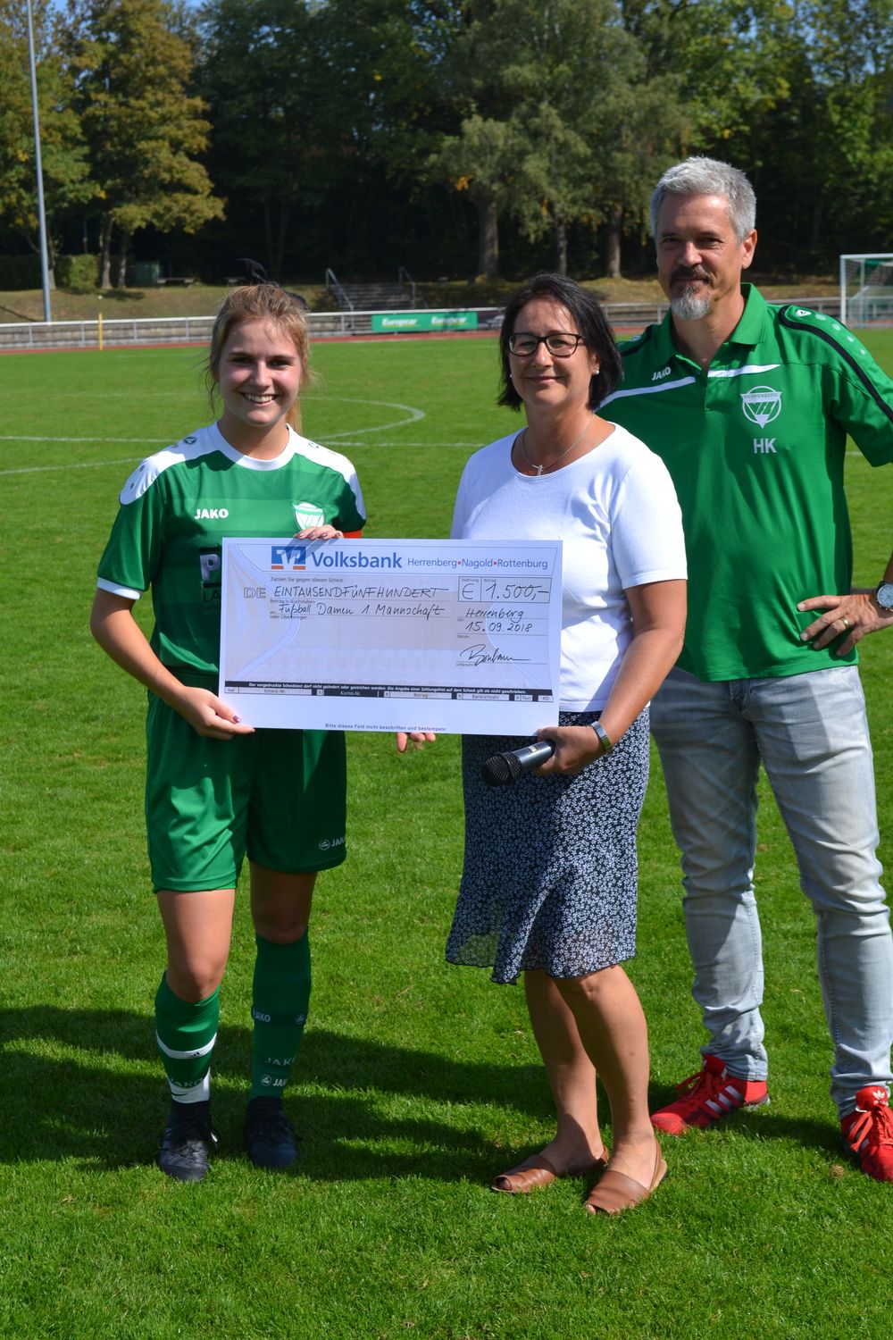 Der VfL-Hauptverein freut sich mit den Fußball-Damen über den Aufstieg in die Verbandsliga und ganz besonders über den äußerst erfolgreichen Saisonstart. Stellv. für den VfL-Vorstand überreichte Vorstandsmitglied Anita Klenner die Prämie von 1.500€.