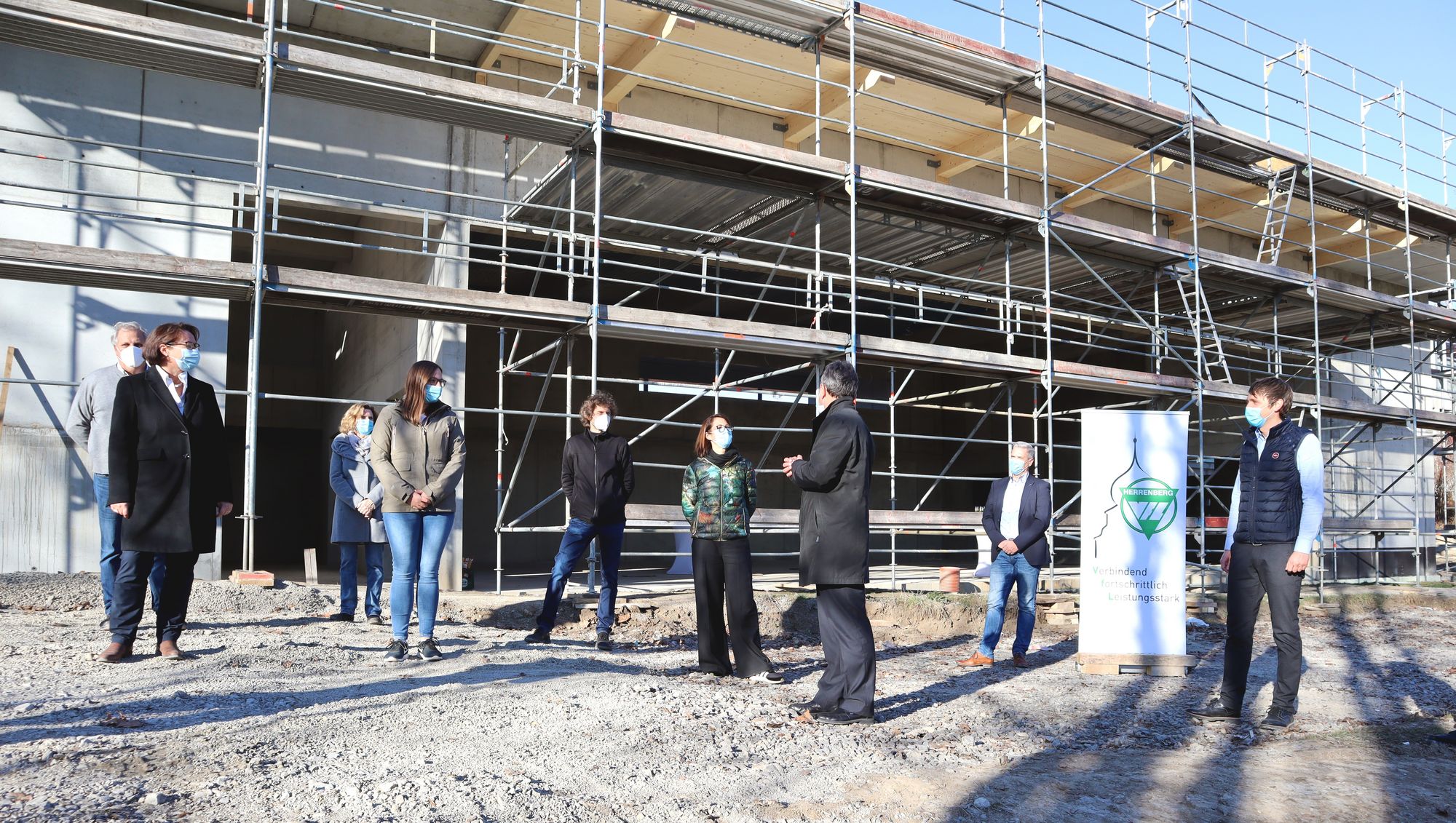 Ein richtiges Handwerkerfest ist derzeit leider nicht möglich. Im kleinen Kreis freuten sich Architekt, VfL- Vorstand und Vertreter der Stadtverwaltung trotzdem über die Fertigstellung des Rohbaus. Herrenbergs Baubürgermeisterin Susanne Schreiber übernahm den Richtspruch.