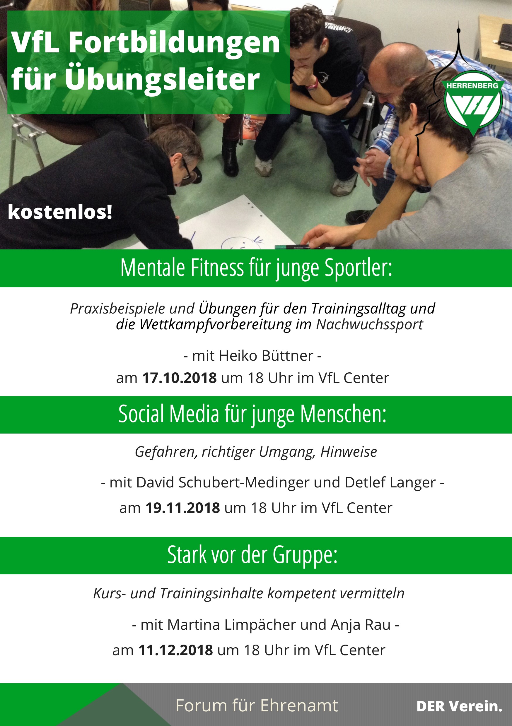 Das neue Kursprogramm für unsere VfL Übungsleiter/innen/helfer/innen steht. Schaut Euch das neue Programm an und tragt Euch in die Kurse ein. Wir freuen uns über Eure Teilnahme.